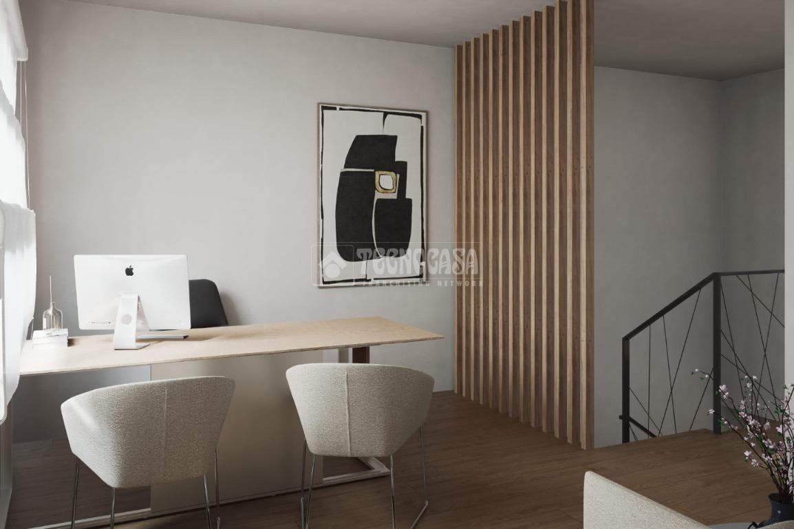 La primera planta alberga un despacho independiente, ideal para teletrabajo o usos polivalentes, junto a una espaciosa habitación doble en suite, que garantiza un alto nivel de privacidad y confort.
